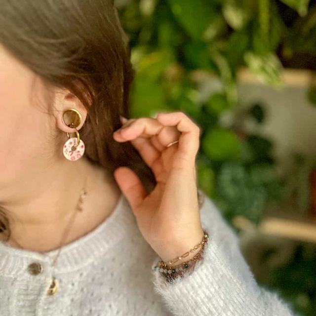 Comme j’ai envie de proposer des pampilles uniques, imaginées par les femmes inspirantes qui m’entourent, c’était une évidence de faire appel à elle. Diane a fouillé dans mon atelier, et a su créer LA paire qui lui ressemble.