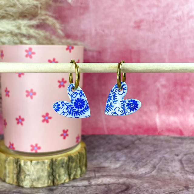 J'ai imaginé cette paire de pampilles, je voulais une base blanche nacré, en forme de cœur allongé et j'imaginais des fleurs bleues.. du bleu parce que pour moi c'est symbole de douceur 💙