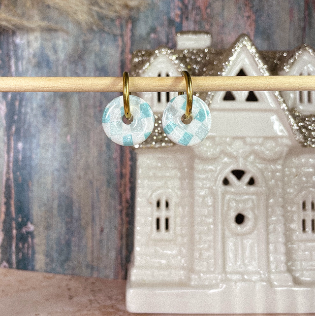 P'tits boulons - Vichy bleu nacré (sans créoles)
