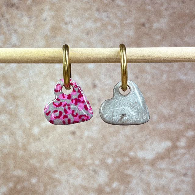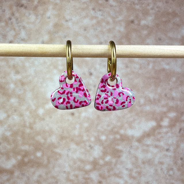 P'tits cœurs - Léopard rose & argenté (sans créoles)